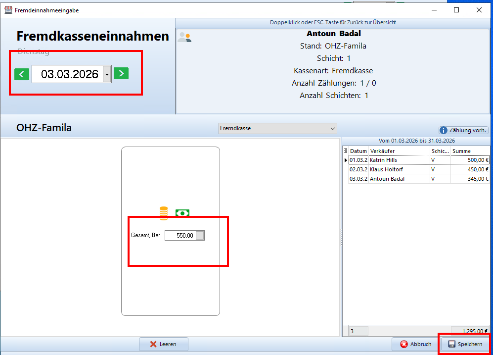 Voraussetzung ist, dass in den Stammdaten des Standes hinterlegt ist, dass es sich um eine Fremdkasse handelt.