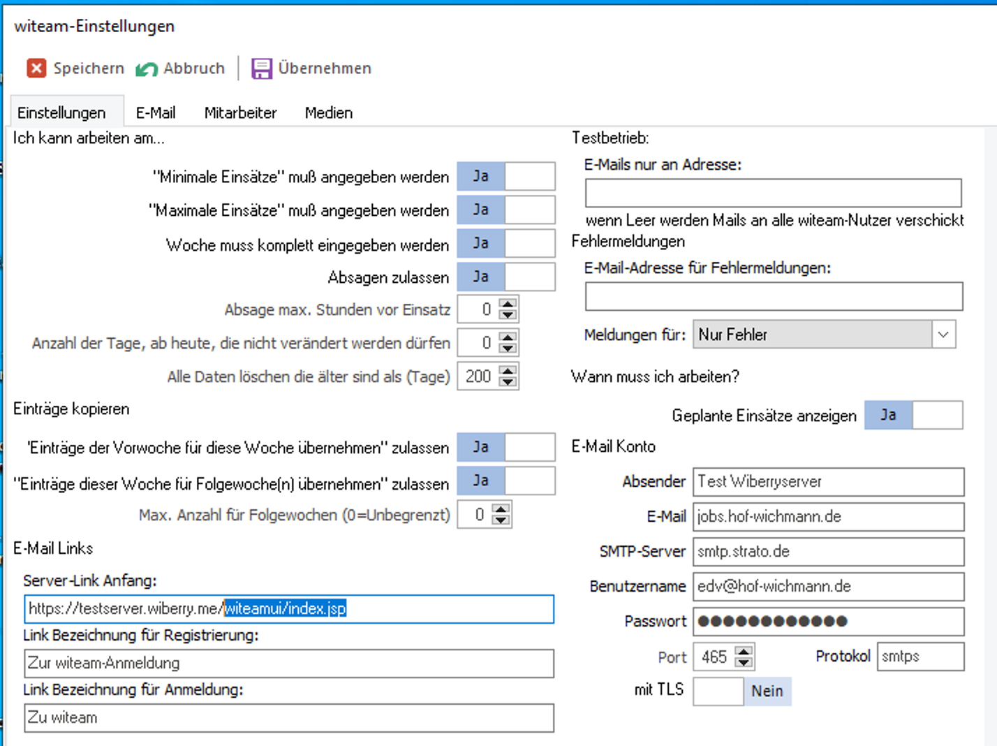 Hier muss das Eingabefeld Server-Link Anfang angepasst werden.