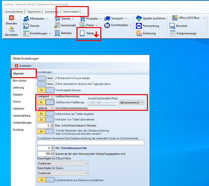 Stammdaten - Tablet - Einstellungen - Allgemein
