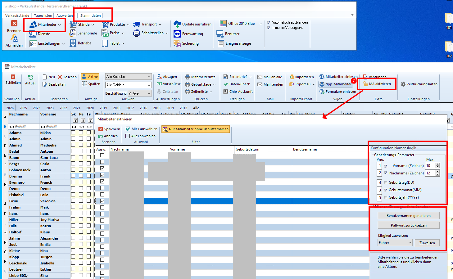 Zu erreichen ist dieses neue Feature über Stammdaten - Mitarbeiter - MA aktivieren