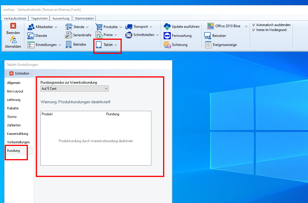 Stammdaten - Tablet - Einstellungen - Rundung