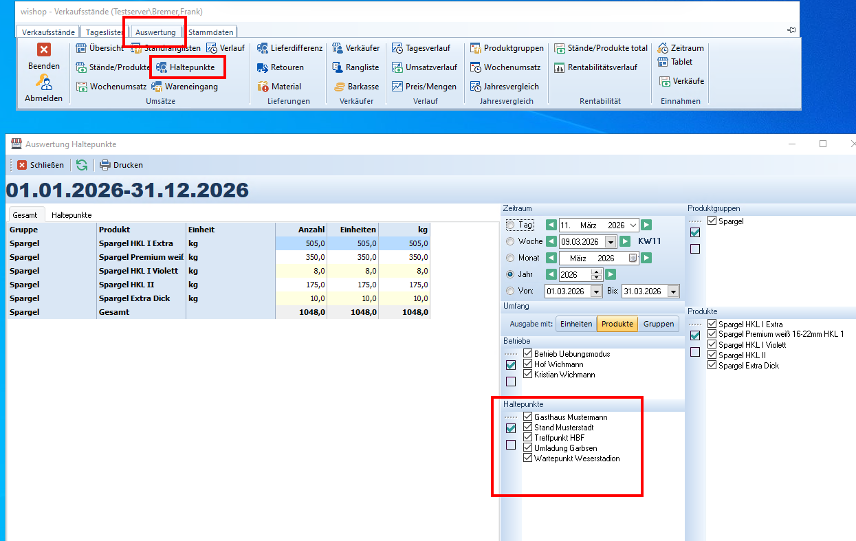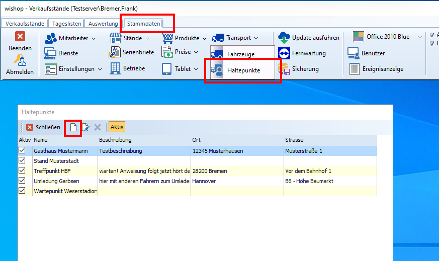In wishop (und wibill) können nun Haltepunkte angelegt werden.Haltepunkte können z.B. Treffpunkte von Fahrern sein, an denen eine Umladung stattfindet.