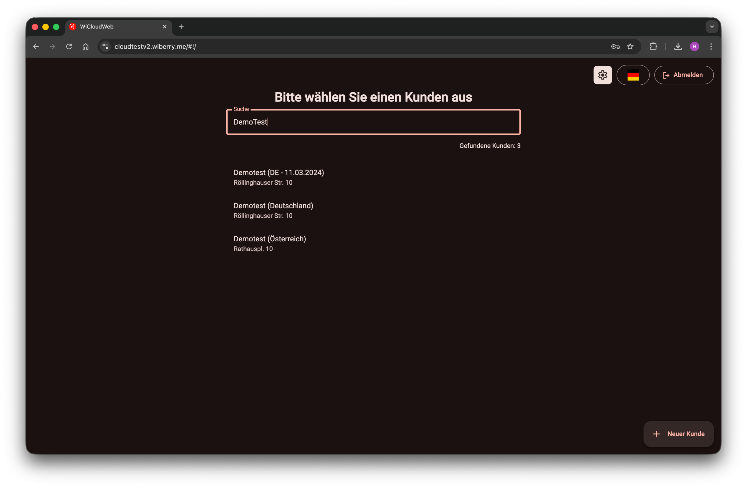 Nachdem man sich erfolgreich angemeldet hat, wählt man den entsprechenden Kunden aus. Anschließend erscheint folgendes Bild.